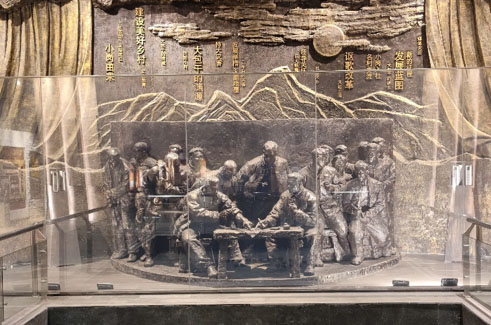 隊員們進入館內(nèi)首先看到了耕作器具及村民們耕作的場景,村民們用他們的勤勞和智慧創(chuàng)造出了小崗村的農(nóng)耕文化。隨后,隊員們往前繼續(xù)參觀,看到了大包干的展區(qū),在大包干紀念館,現(xiàn)代化聲光電技術、翔實的圖文資料,豐富多樣的展示手法,真實地再現(xiàn)了大包干當年醞釀到發(fā)生到發(fā)展的全過程,展現(xiàn)了改革開放40多年以來小崗村波瀾壯闊的經(jīng)歷,展區(qū)內(nèi),利用雕塑的方法生動展現(xiàn)了當時簽訂契約的場景,隊員們也從村民們的神態(tài)中感受到了他們的堅定,仿佛也置身于當時的那個緊張與嚴肅的氛圍中,更加深刻的體會了小崗村18位農(nóng)民解放思想、敢想敢干、敢為天下先的改革創(chuàng)新精神。