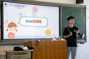 廈門大學(xué)嘉庚學(xué)院三下鄉(xiāng)隊(duì)伍山花爛漫實(shí)踐隊(duì)深入福建平潭,進(jìn)行兒童生理知識(shí)科普。