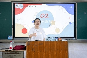 和班級(jí)的同學(xué)打過照面后,就開始了激動(dòng)人心的破冰環(huán)節(jié)。先是同學(xué)們各自進(jìn)行自我介紹,實(shí)踐隊(duì)員也紛紛變成小老師,伴隨同學(xué)們歡快的游戲,師生之間的隔閡逐漸消除,也利于小老師們?cè)诤罄m(xù)更好展開性教育知識(shí)普及活動(dòng)。除了破冰游戲,實(shí)踐隊(duì)成員還設(shè)計(jì)了富有參與性、體驗(yàn)性特色的“花蕾互動(dòng)科普小講座”。