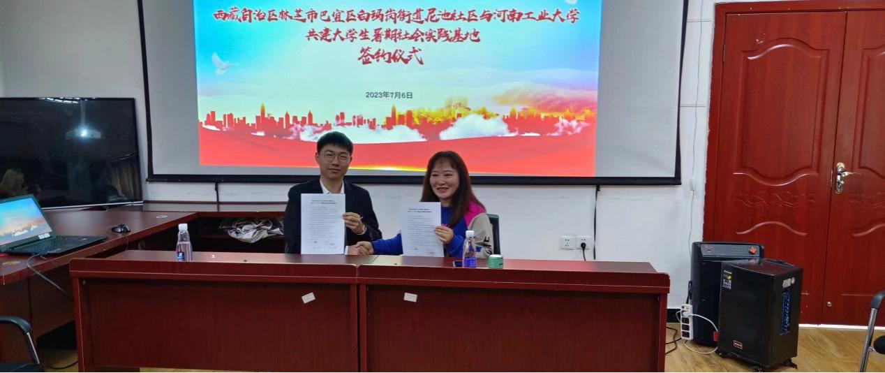 12日上午,河南工業(yè)大學與林芝市四個社區(qū)(村居)共建社會實踐基地協(xié)議簽約儀式在林芝舉行,團隊隊長李遠宏與雙擁路社區(qū)、尼池社區(qū)、公眾村、永久村代表簽約《河南工業(yè)大學土木工程學院(建筑學院)2023年“三下鄉(xiāng)”暑期社會實踐活動基地協(xié)議》,團隊全體成員、有關(guān)負責領(lǐng)導同志參加簽約儀式。