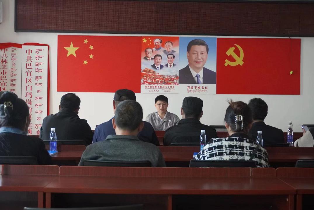 當日晚些時候,團隊先后前往林芝市巴宜區(qū)覺木街道雙擁路社區(qū)、林芝市巴宜區(qū)八一鎮(zhèn)永久村、林芝市巴宜區(qū)八一鎮(zhèn)公眾村進行黨學宣講,李遠宏在三個社區(qū)(村居)分別作了《全面把握切實建設好社會主義中國式現(xiàn)代化》、《聚焦鄉(xiāng)村振興,融合民族團結(jié)》和《凝心聚力創(chuàng)造新的偉大榮光 沿著必由之路奪取新西藏的更大勝利》的主題宣講。期間團隊隊員協(xié)助社區(qū)(村居)工作人員進行會場布置,宣講后社區(qū)(村居)工作人員紛紛表示將認真學習貫徹落實黨的二十大政策精神,市民(村民)們紛紛表達了自己對黨和祖國的感激之情,孩子們懷抱小狗的燦爛笑容也表露出對祖國的熱愛。