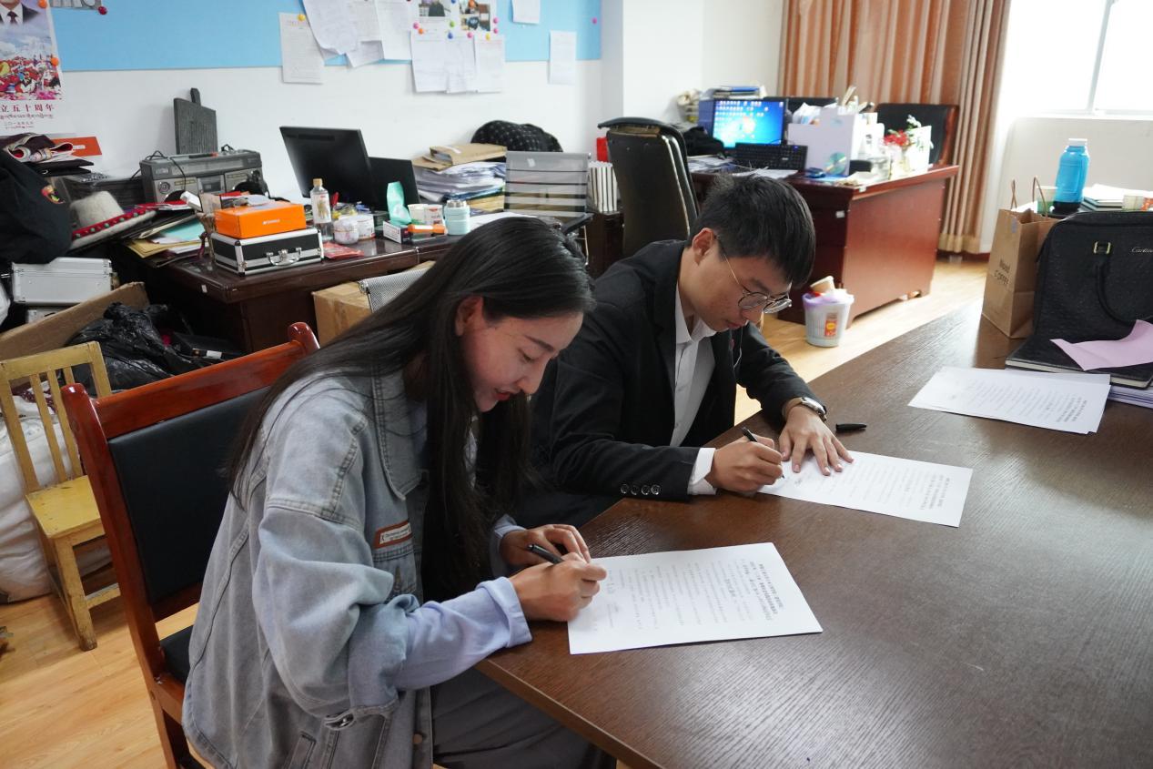 12日下午,河南工業(yè)大學與林芝市“紅旗頌”聯(lián)展館辦公室及“團結(jié)頌”、“振興頌”、“解放頌”、“英雄頌”等四個紅色研學主題展館共建社會實踐基地協(xié)議簽約儀式在林芝舉行,團隊隊長李遠宏與林芝市巴宜區(qū)黨工委書記李玉領(lǐng)簽約《河南工業(yè)大學土木工程學院(建筑學院)2023年“三下鄉(xiāng)”暑期社會實踐活動基地協(xié)議》,團隊全體成員、有關(guān)負責領(lǐng)導同志參加簽約儀式。