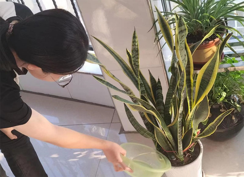 實(shí)踐團(tuán)成員為老年公寓照顧花草