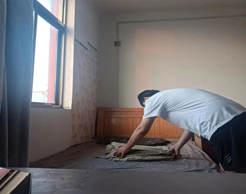 隨后,實(shí)踐團(tuán)的成員們進(jìn)行了各自的分工,一部分負(fù)責(zé)打掃衛(wèi)生,在打掃衛(wèi)生的時(shí)候發(fā)現(xiàn)有位不能自理的爺爺,實(shí)踐團(tuán)成員還為他整理了床鋪;一部分負(fù)責(zé)陪老人聊天,在聊天過(guò)程中一位老奶奶得知實(shí)踐團(tuán)成員為大學(xué)生時(shí),她鼓勵(lì)實(shí)踐團(tuán)成員要好好學(xué)習(xí),成為建設(shè)祖國(guó)有用的人才;實(shí)踐團(tuán)成員還發(fā)現(xiàn)這個(gè)老年公寓有不少花草,為這些花草施肥并澆水。實(shí)踐團(tuán)成員的熱情和細(xì)心的照料關(guān)懷,得到了老人們高度認(rèn)可,老人們的臉上也露出了開心的表情。