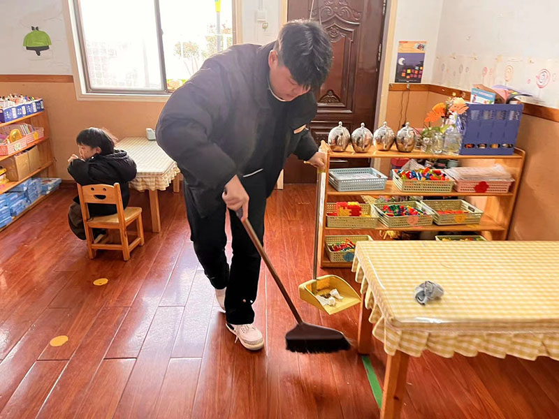 志愿者服務以愛為前提,服務社會。實踐團隊剛到幼兒園老師簡單的說了一下就開始了實踐任務。小朋友們進行午點活動后實踐隊員就開始幫老師們打掃衛生收拾桌子,幫助小朋友們梳頭整理衣物,還幫助小朋友洗手,和孩子們有說有笑、其樂融融,相處的非常融洽。