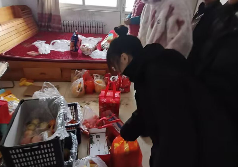 實踐團成員給老人分發慰問品