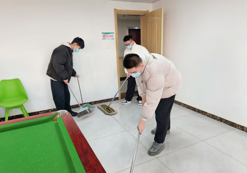 在接下來的行程中,團隊成員主動參與到養(yǎng)老院活動區(qū)域的清掃工作中,實踐團忙碌的身影出現(xiàn)在活動室每個角落,致力于為老人們提供一個干凈舒適的生活環(huán)境。
