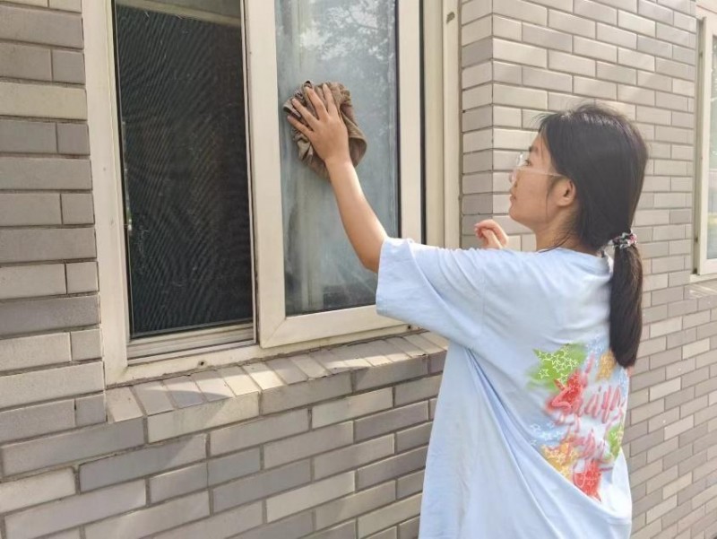 圖為實踐團成員陳悅悅幫老人擦窗戶