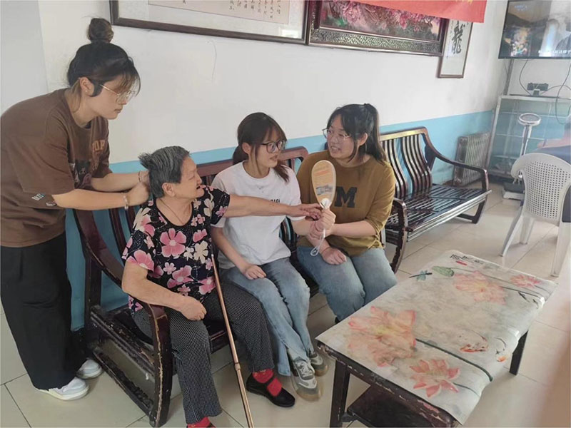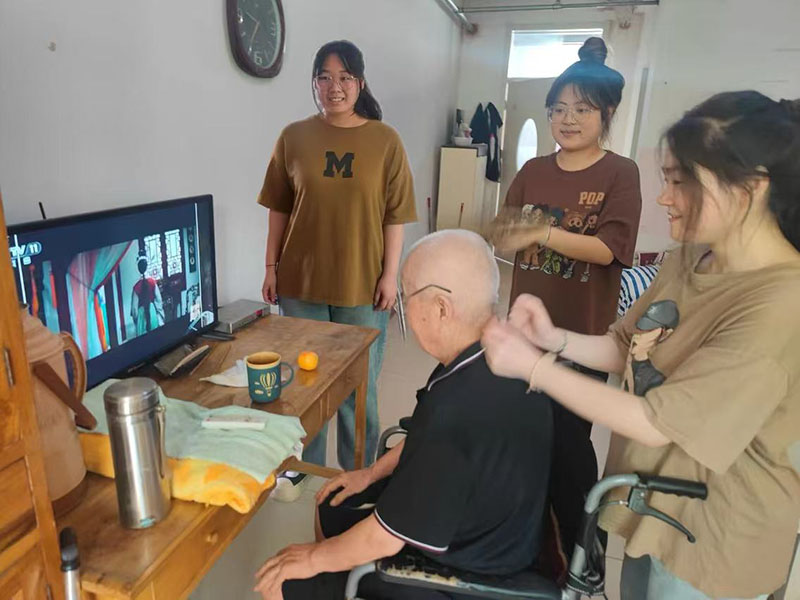 圖為實(shí)踐團(tuán)成員王楠給老人捶背