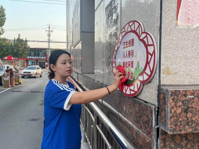 幫助單位打掃衛(wèi)生(圖為實踐成員李佳)