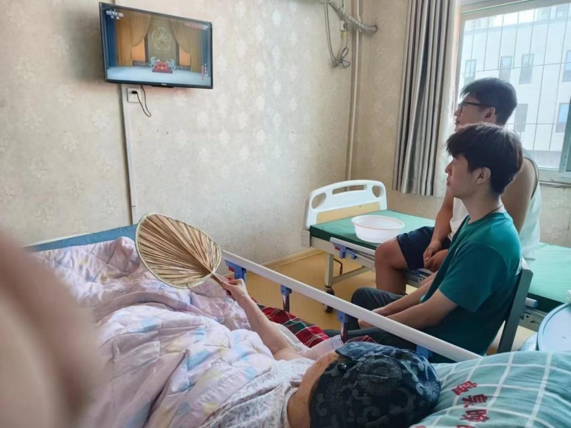 除了陪伴聊天,實踐團成員還和老人們一起觀看電視節目。他們陪伴老人們一起笑、一起感受節目中的歡樂和情感,給老人們帶來了愉快的娛樂時光。共同分享了節目中的有趣瞬間,營造了一個輕松愉快的氛圍。