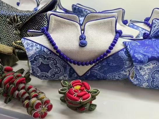 在造型設計方面,劉氏盤扣堪稱一絕。設計師們從自然萬物和傳統文化中汲取靈感,將花、鳥、蟲、生肖、漢字等元素巧妙融入其中。一片片樹葉扣,線條流暢,脈絡清晰,仿佛帶著生命的律動;一只只蝴蝶扣,雙翅靈動,栩栩如生,隨時準備振翅高飛;“喜”“福”“壽” 等漢字扣,更是將傳統書法的韻味與盤扣工藝完美結合,傳遞著美好的祝福。目前,劉氏盤扣已形成 20 個系列,近百種產品,每一款造型都凝聚著設計師的匠心獨運。
