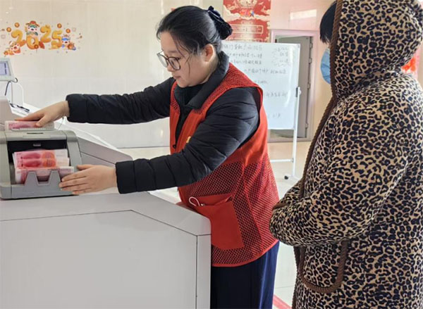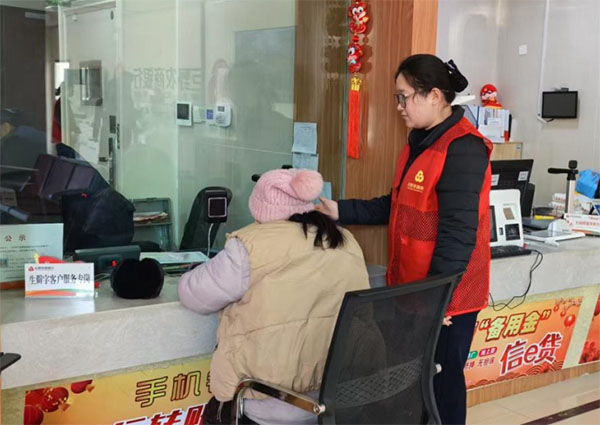 營業前,李淑娟會仔細檢查營業環境,擦拭柜臺、整理宣傳資料,還會認真調試各類服務設備,確保營業時能正常使用。營業期間,志愿者李淑娟的身影在大廳中忙碌不停,在引導客戶取號時,能根據客戶需求進行合理分流。