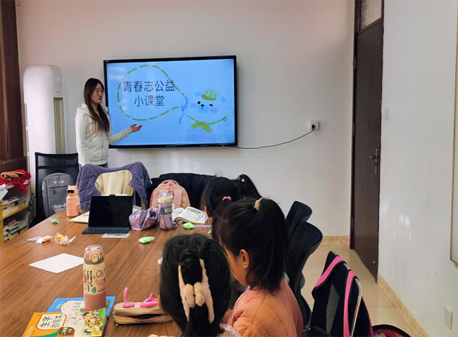 圖為實(shí)踐團(tuán)成員邵晨宇為孩子開展公益課堂活動