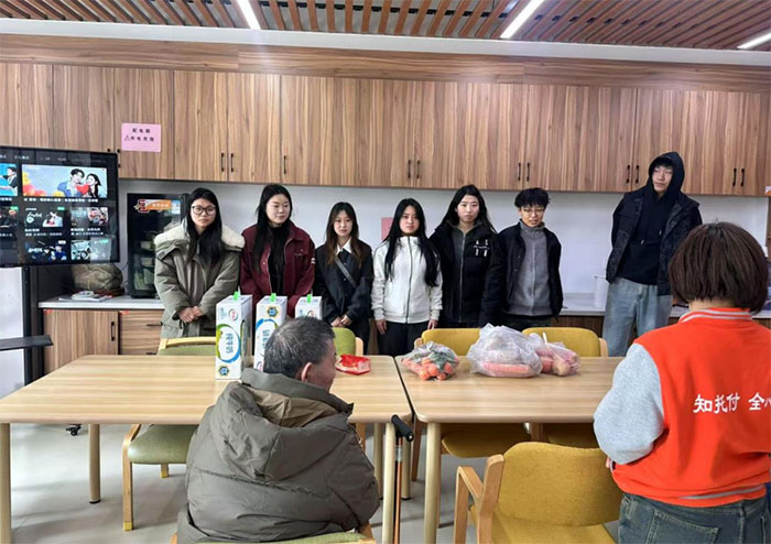 在活動初期,實(shí)踐團(tuán)成員首先為養(yǎng)老中心的老人們送去了生活用品,包括蔬菜、水果、牛奶等日常必需品,旨在提升老人們的生活質(zhì)量。團(tuán)隊(duì)成員和老人們互動,溫馨的場面讓每一位在場的人都感受到了濃濃的愛心。