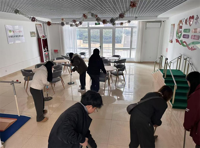 接下來的幾天,團(tuán)隊(duì)成員們積極參與到養(yǎng)老中心的清潔與整理工作中。在指導(dǎo)員的帶領(lǐng)下,成員們拿起清潔工具,認(rèn)真打掃室內(nèi)每個(gè)角落,確保環(huán)境的整潔與舒適。此外,實(shí)踐團(tuán)成員還為老人們組織了豐富多彩的活動,其中包括一起讀書、唱歌、聊天等互動,增進(jìn)了老人們之間的交流和心靈的愉悅。