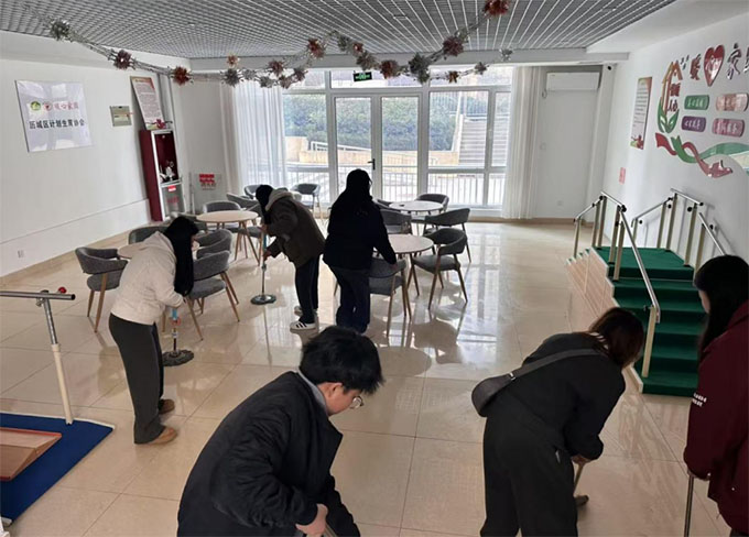 接下來的幾天,團隊成員們積極參與到養老中心的清潔與整理工作中。在指導員的帶領下,成員們拿起清潔工具,認真打掃室內每個角落,確保環境的整潔與舒適。此外,實踐團成員還為老人們組織了豐富多彩的活動,其中包括一起讀書、唱歌、聊天等互動,增進了老人們之間的交流和心靈的愉悅。