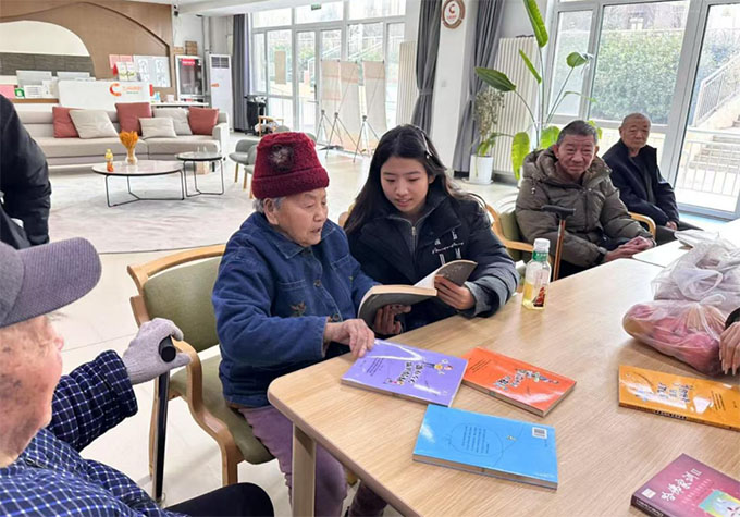特別是在與老人們共讀書籍的活動中,幾位成員與老人們共同閱讀并交流書中的故事,老人們眼中閃爍著智慧與溫暖的光芒。大家沉浸在書本帶來的精神世界中,彼此間的距離也在不知不覺中拉近了。