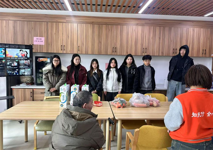 在活動初期,實踐團成員首先為養老中心的老人們送去了生活用品,包括蔬菜、水果、牛奶等日常必需品,旨在提升老人們的生活質量。團隊成員和老人們互動,溫馨的場面讓每一位在場的人都感受到了濃濃的愛心。
