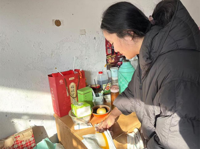 實踐團成員將提前準備好的牛奶和餅干有序地分發給老人,只為向老人們表達實踐團成員的一份心意,給老人帶來了關愛與溫暖。
