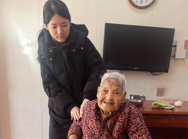 主動協助護工打掃衛生,認真擦拭桌椅、清掃地面,不放過任何一個衛生死角,讓養老院的環境煥然一新。