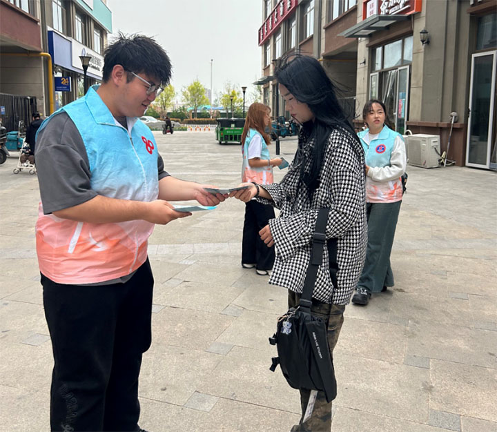 隨后,實(shí)踐團(tuán)成員們來(lái)到鵲華理想社區(qū),積極展開(kāi)“一盔一帶”宣傳活動(dòng)。成員們向社區(qū)人員詳細(xì)講解佩戴頭盔和系安全帶的重要意義,并通過(guò)展示真實(shí)的事故案例,讓社區(qū)居民更直觀地認(rèn)識(shí)到安全防護(hù)措施的重要性。為了讓居民更好地掌握正確佩戴頭盔的方法,同學(xué)們還在現(xiàn)場(chǎng)進(jìn)行了示范,耐心解答居民提出的疑問(wèn)。隨后,在交警的帶領(lǐng)下,學(xué)子們走上街頭,協(xié)助交警進(jìn)行交通疏導(dǎo)。他們身著志愿者服裝,手持引導(dǎo)旗,認(rèn)真地引導(dǎo)行人過(guò)馬路,對(duì)闖紅燈、不走斑馬線(xiàn)等不文明行為進(jìn)行耐心勸導(dǎo)。盡管烈日炎炎,但學(xué)子們始終堅(jiān)守崗位,以飽滿(mǎn)的熱情投入到志愿服務(wù)中。