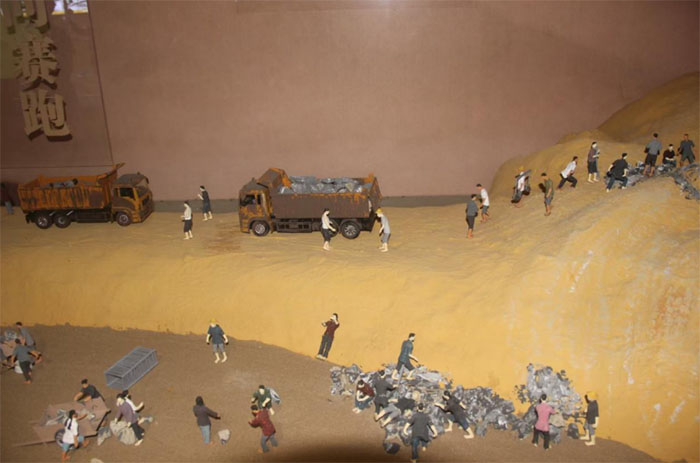 最令人動容的是那組泛黃的老照片:婦女們在刺骨的海水中傳遞石料,青年們在懸崖邊懸空作業,技術員們在煤油燈下徹夜計算。每一張照片都記錄著建設者們用血肉之軀與大自然抗爭的感人瞬間。展館保留的一段原始海堤上,那些深淺不一的鑿痕仿佛還在訴說著當年的艱辛與堅持。