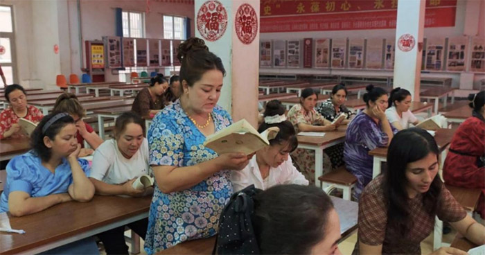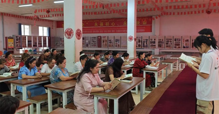 (熱孜萬古麗大姐自信地用普通話朗讀課文)