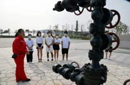 營二井是勝利油田發現的第一國產功勛井,它是在咱們中國石油稀缺的時代背景下獲得的日產555噸的高產優流井,這口井的發現證明了在東營地區的地下有著非常豐富的石油資源的,因此在華北地區開展了轟轟烈烈的石油大會,營二井教育基地因此于2004年的6月建成,講解員帶我們參觀了基地內四大標志性建筑。