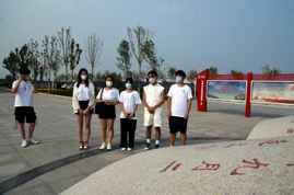 圖為在營二井教育基地標志前拍照留念 中國青年網通訊員 李明澤 攝
