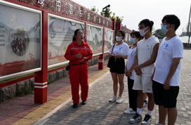 圖為營二井講解員為實踐團講解翻書型日歷雕塑 中國青年網通訊員 李明澤 攝