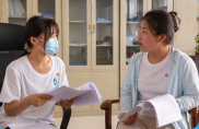 圖為實踐團成員與工作人員交流,中國青年網通訊員 李勇 攝