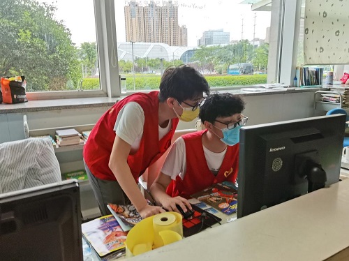 我的主要工作是幫助圖書管理員進行還書手續。借書一般在自動借書機器人上完成,還書當然是我來完成啦。當讀者來還書時,他們輕車熟路的將書籍拿給我,我則把書籍放在讀卡器上進行掃描,系統就會自動完成還書,當然,有些時候書籍無法自動掃描,這時我們可以用手動掃描儀進行人工掃描。小朋友在借書的過程中,由于書籍的芯片丟失或者過磁,導致機器掃描不出來,小朋友無法在機器人上成功借書,我們就需要幫助他們進行人工借書。甚至一些書籍的索書號模糊不清,我們就需要進行補上,這些工作非常簡單,但是需要謹慎細心。雖然偶爾會感覺乏味,但是它培養了專心細致的性格以及平穩了我浮躁的心。生活中總是存在酸甜苦辣咸的事,當我們品嘗了它們之后,我們便會有所了解,只有經歷過才能真正講出它的故事。一開始我是有點畏懼這份工作的,出于各種擔心,我起了打退堂鼓的想法,但是我還是鼓起勇氣去接受它,既然接受了這份工作,那么就要付出努力和汗水,消除那些不該有的擔心,到目前為止,我已經可以勝任它了,這次實踐活動不僅完成了分配下來的工作,我還完成了一次由內及外的蛻變。對于還回來的書,我就把它們放在小推車上,當然這也是有講究的,需要根據標簽進行分類,這樣就可以方便另一個實踐隊員將它們擺上書架。