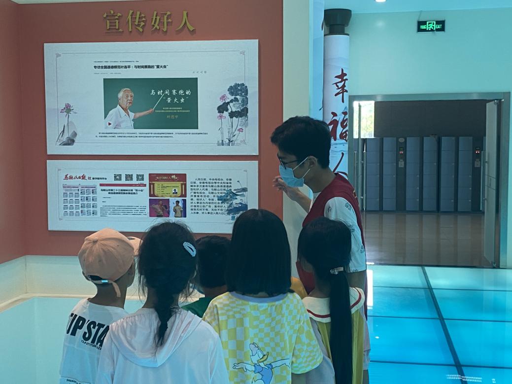 圖為實踐隊帶領小朋友參觀好人墻。中國青年網通訊員 胡佳豪 供圖