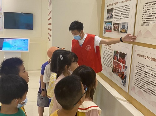 圖為實踐隊員在向小朋友介紹道德模范葉連平。中國青年網通訊員 胡之洋 供圖