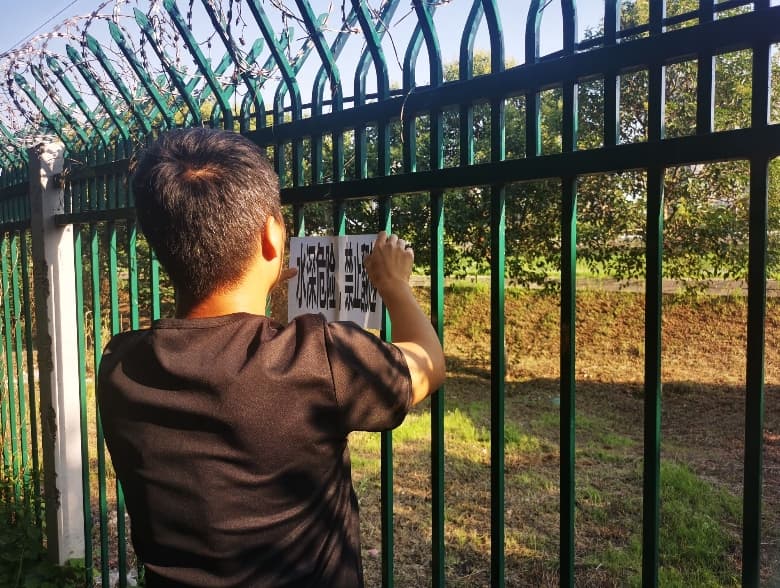圖為實踐隊員張貼預(yù)防溺水的標(biāo)語。愛開大學(xué)生網(wǎng)通訊員 王源浩 攝