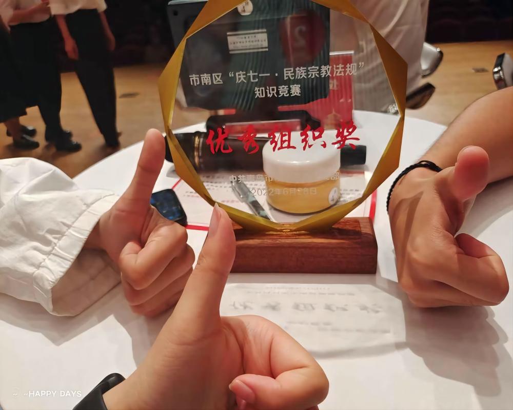 中共市南區委統戰部舉辦的“市南區慶‘七一’·民族宗教法規知識競賽”活動。小隊經彩排、賽前準備等,代表五四廣場社區取得了優異成績。