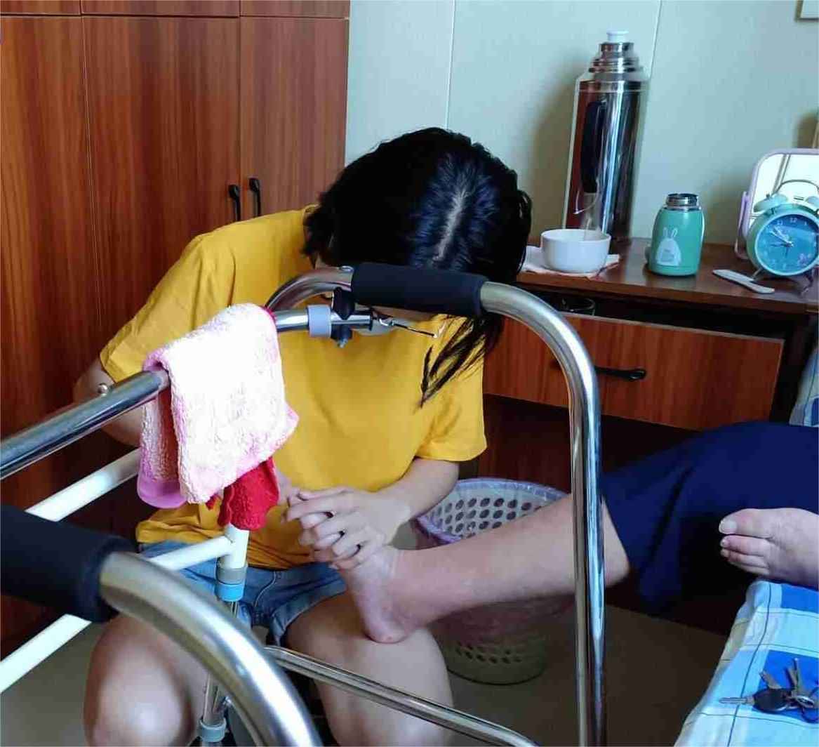 圖為隊員在為其中一位老人修剪腳趾甲 羅子晴 供圖