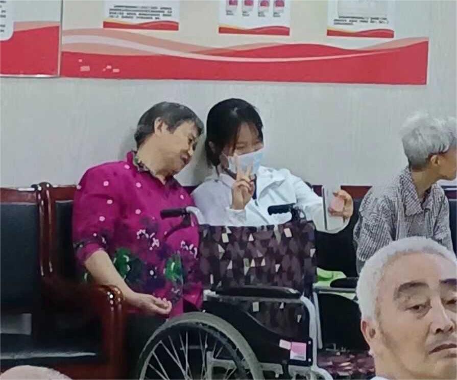 傾聽交談,送去溫暖與老人們交談是本次志愿活動最重要的,也是最必要的。通過傾聽,可以了解到老人的情況,無形中增強隊員們尊重老人的意識。通過交談,可以讓老人們感受到志愿者們的關懷,志愿者們可以給老人們宣傳綠色環保、疫情防控的知識。隊員們謹記在活動前了解到的注意事項,向老人說明身份與目的,在此過程中不主動問及老人的家里情況以及來養老院的原因,小心翼翼地觀察和照顧老人的情緒。剛開始都是圍繞很日常的話題交流,如“早上吃了什么”、“早上幾點起床”、“對這里的環境和人滿不滿意”等等。傾聽老人述說著他們的過往,感嘆時間的無情,隊員們總是一個勁兒地找話題,只希望用自己的努力不讓現場變得尷尬,盡力帶給老人溫暖。這一次活動讓隊員們了解到了他們年輕時候的生活,其中有一位老人非常愿意和隊員們分享她的過往,在與隊員們分享的時候,她的臉上洋溢著幸福的笑容,這種幸福感非常真實,隊員們都感嘆她擁有很幸福、快樂的生活。當然,并不是所有老人都那么健談,有的老人不愿意與其他人有太多的接觸,隊員們了解到有的老人害怕自己說錯話得罪人而只愿意待在自己的房間里,不愿意到大廳活動。隊員們了解到原因后,也沒有過多的勸解,只是靜靜地傾聽,安靜地陪伴。