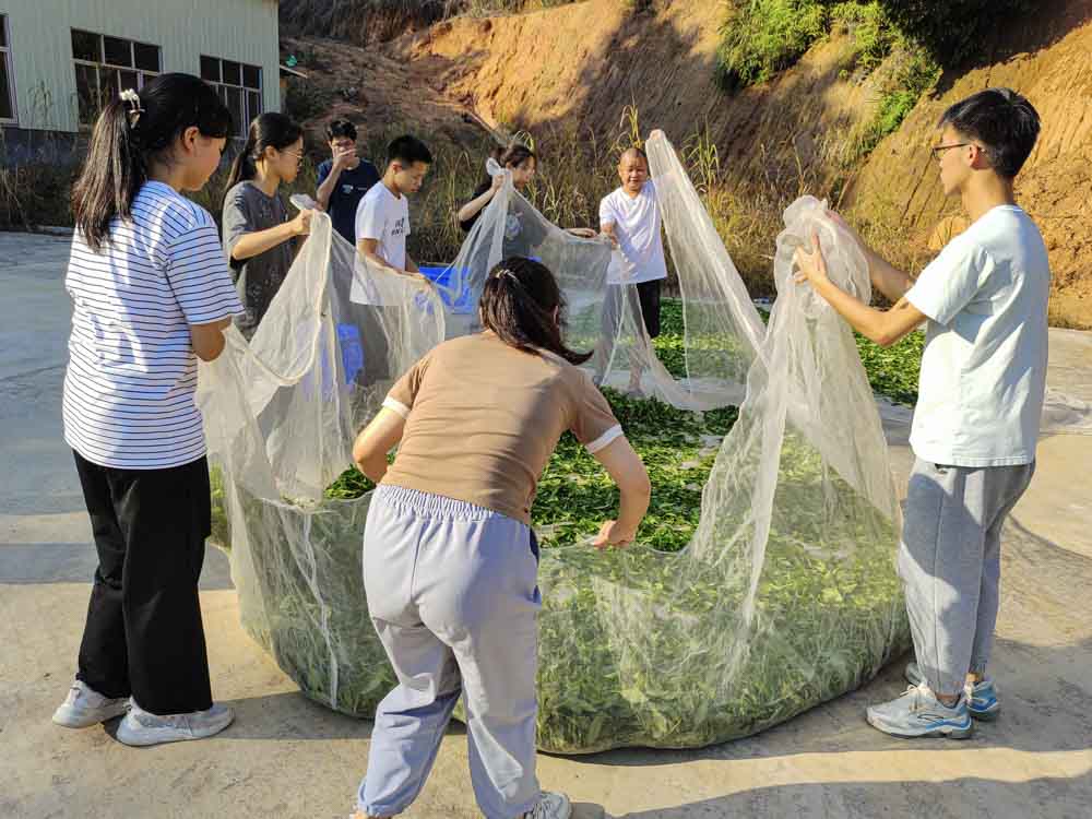 在興寧市農(nóng)豐水果專業(yè)合作社,實(shí)踐隊(duì)隊(duì)員有幸親身體驗(yàn)了晾青、曬青、搖青、發(fā)酵、殺青、揉捻和烘培的制茶全過程,切實(shí)感受到半自動生產(chǎn)模式下制茶的不易,了解到夏茶品質(zhì)較春茶差、香味難以保留以及茶湯硒含量少等問題,對徑南鎮(zhèn)茶葉產(chǎn)業(yè)發(fā)展問題有了更深層次的認(rèn)識。