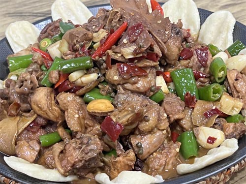 平邑飲食文化品種眾多,說到平邑美食里面蘊含的魅力,它的特色在于滋味,精髓在于文化。我們來到山東提及臨沂,一定會想到糝和臨沂炒雞這兩大美味。其中平邑有獨樹一幟的臨沂糝湯,一般在早餐食用,以黑糝而聞名,區別于山東棗莊、濟寧等地的白糝湯,白糝湯主要是雞湯,白胡椒為主,而臨沂黑糝則是牛肉湯、黑胡椒為主,顏色深,味道濃,早上來上這么一碗,暖胃滋補,很受當地人歡迎;有香鮮咸辣可口的臨沂炒雞,在山東,乃至全國的炒雞江湖中,都可以說數一數二,其色澤誘人,汁水濃郁,滿嘴留香,堪稱是臨沂最有代表性的名菜之一;有久負盛名的臨沂煎餅,特別是沂蒙六姐妹煎餅,承載了歷史,在平凡的食物中,彰顯了沂蒙山革命老區人民的家國情懷,現在煎餅的做法,越來越精細,不過很多人還是喜歡吃這種大鏊子、慢火攤的煎餅,這才是地道的傳統食物。