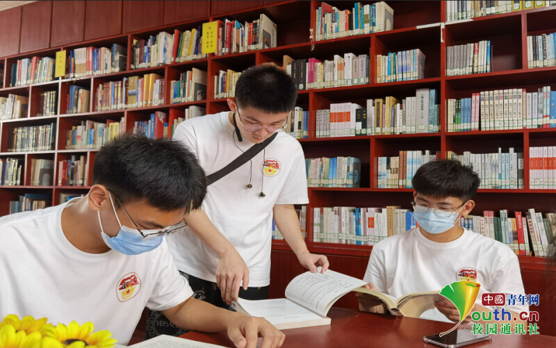圖為實踐隊員在十堰圖書館就查詢到有關鐵道兵資料進行討論。