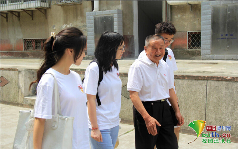 圖為汪老先生與實踐隊員一起前往襄渝鐵路遺址并進行親切的交談。