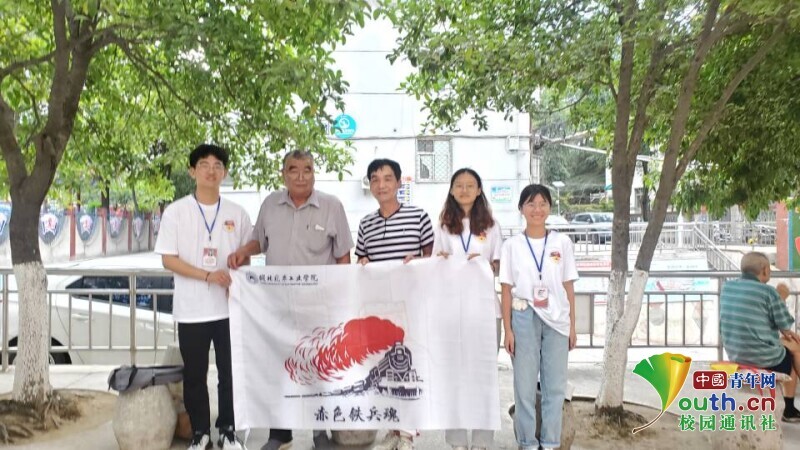 圖為赤色鐵兵魂實踐團隊與鐵道兵的合照。 中國青年網通訊員 駱張瑾 攝