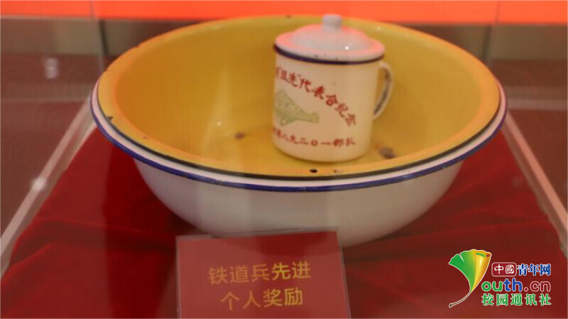 圖為在文化展廳中所展示的“鐵道兵先進個人獎勵”。中國青年網通訊員周宇寬 攝