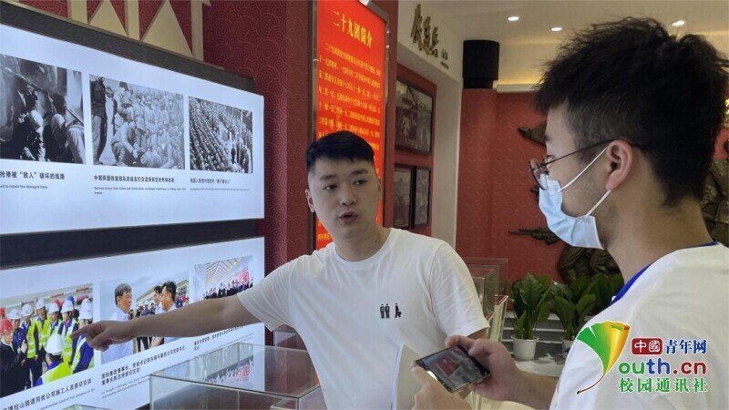 圖為“赤色鐵兵魂”團隊隨著中鐵十一局五公司宣傳部部長來到鐵道兵文化展廳。 中國青年網通訊員 周宇寬 攝