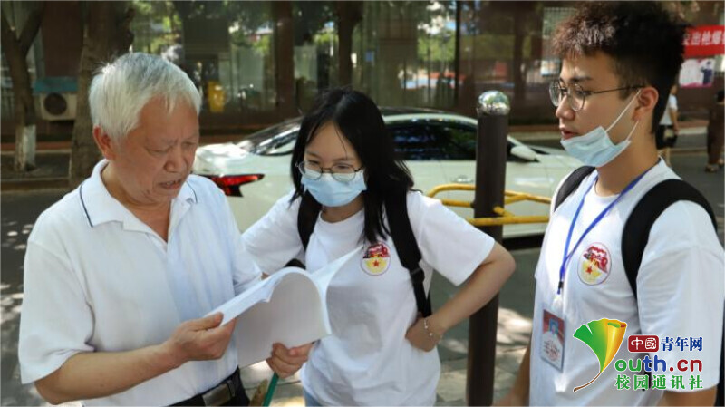 圖為“赤色鐵兵魂”團隊在宣傳部部長的帶領下與黃月道爺爺見面,團隊成員將自己編寫的《憶襄渝歲月,傳鐵兵精神》贈予黃爺爺。 中國青年網通訊員 周宇寬 攝