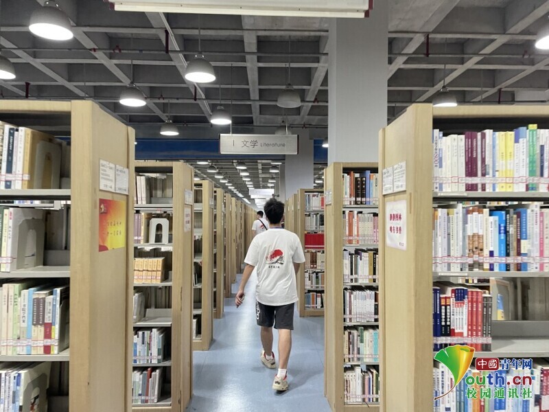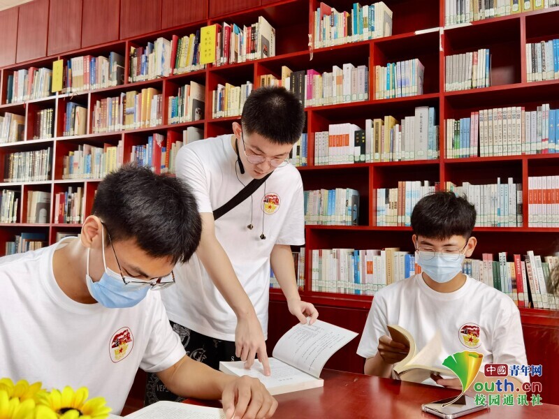 圖為“赤色鐵兵魂”團(tuán)隊(duì)繼續(xù)在圖書(shū)館綜合圖書(shū)室內(nèi)尋找書(shū)籍。 中國(guó)青年網(wǎng)通訊員 周宇寬 攝