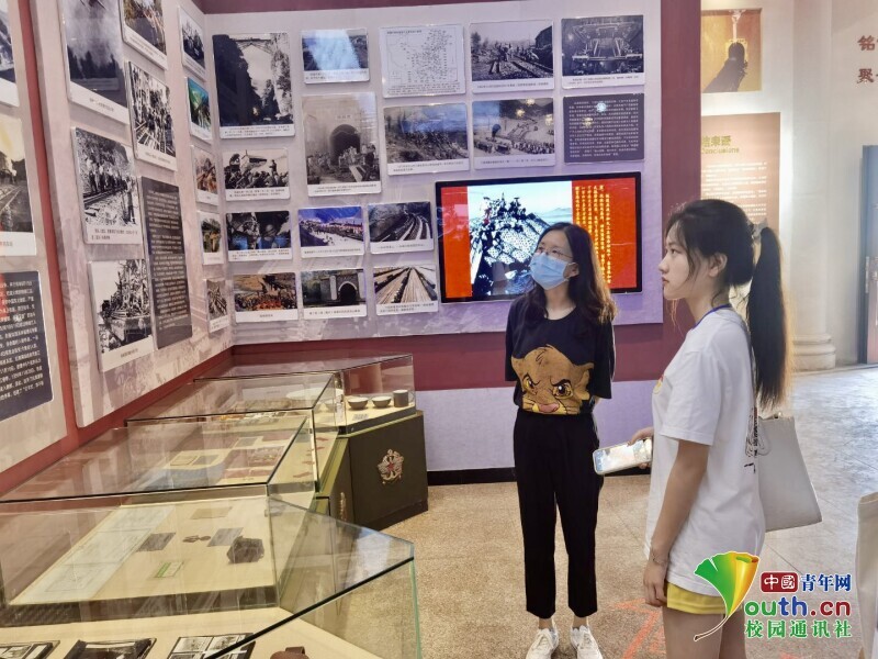 圖為“赤色鐵兵魂”團(tuán)隊(duì)找到展館內(nèi)的的老鐵道兵戰(zhàn)士,了解鐵道兵生活。 中國青年網(wǎng)通訊員 周宇寬 攝