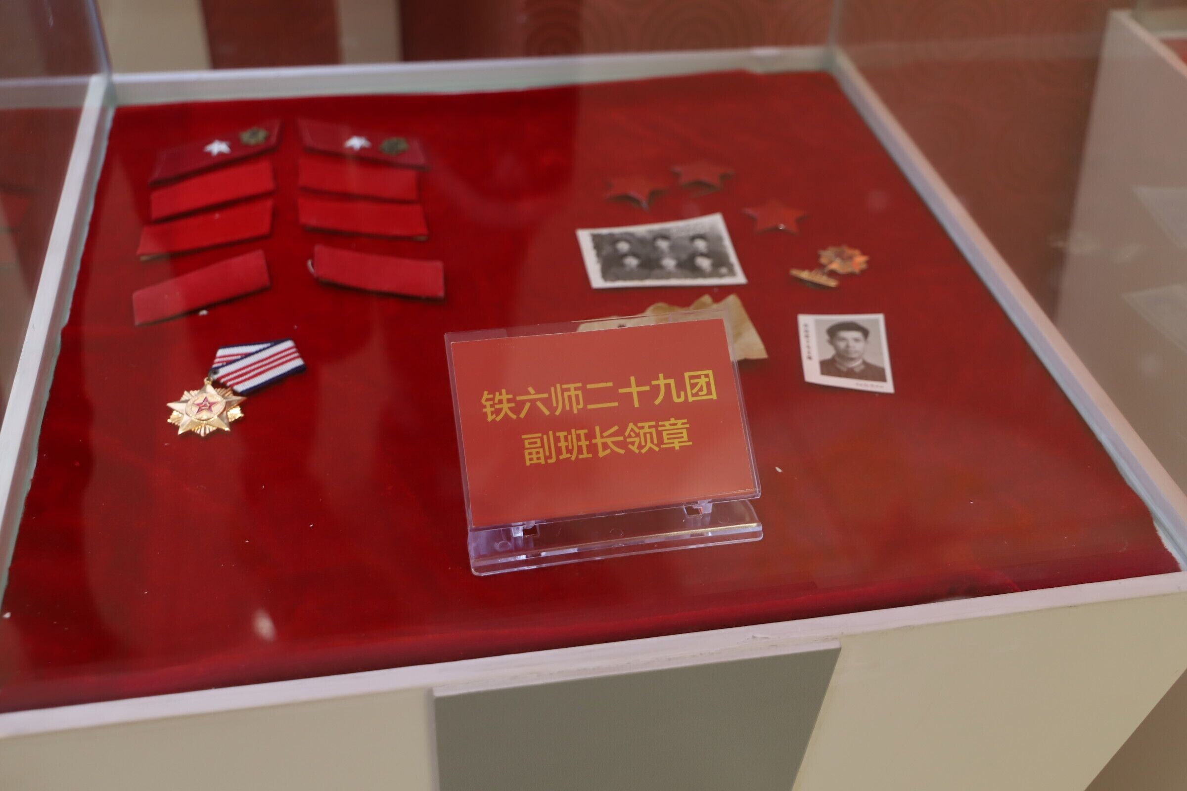 圖為團隊成員在參觀中鐵十一局五公司設立的鐵道兵歷史展廳中拍攝的“鐵六師二十九團副班長領章”。中國青年網通訊員 周亞琪 供圖